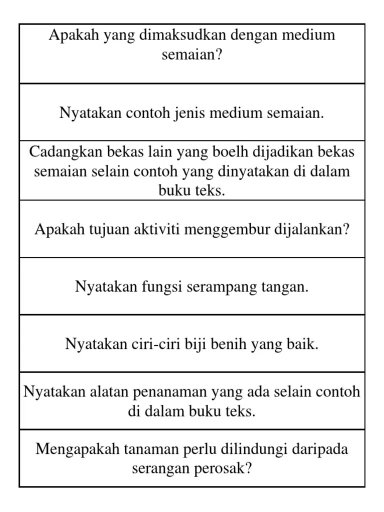 Kuiz teknologi pertanian tahun 5. Teknologi pertanian standard kandungan teknologi pertanian menyentuh kaedah . Unknown june 9, 2020 at 4:49 am. Soalan akhir tahun rbt teknologi pertanian tahun 5 pdf. Nota ringkas bagi topik ini. Melukis lakaran projek yang ke 3 di dalam buku latihan rbt.